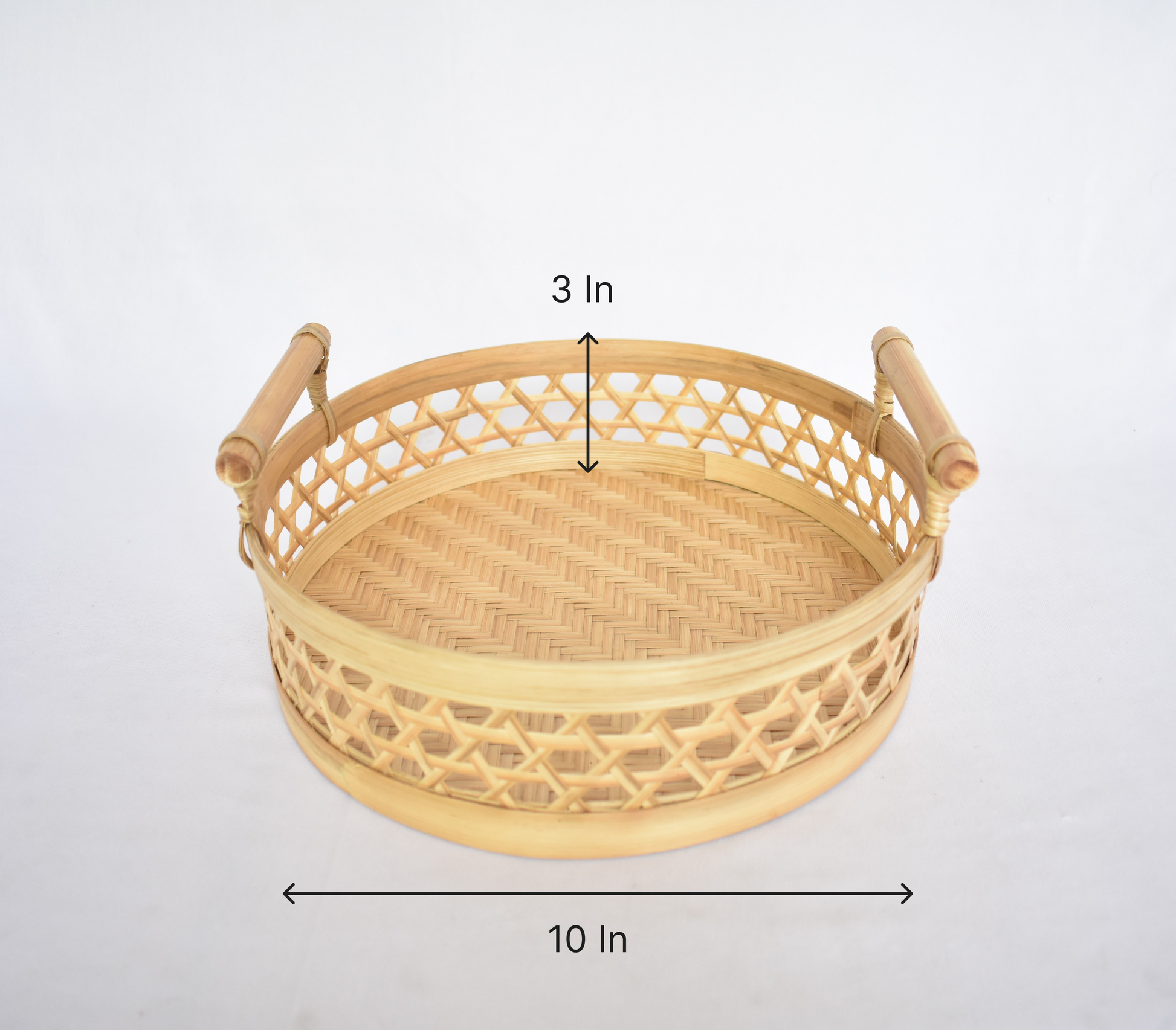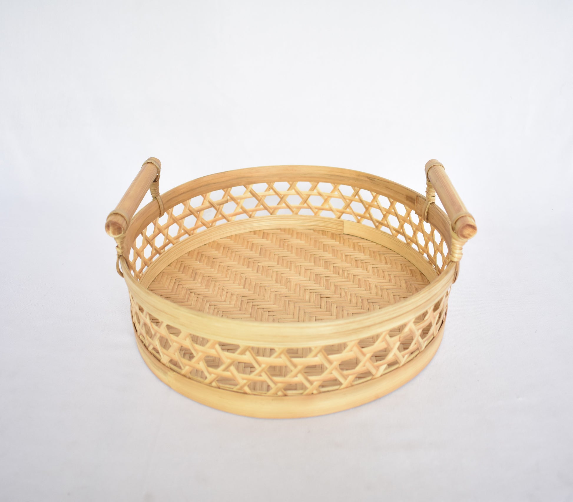 Handcrafted bamboo tray with sturdy handles, perfect for serving or organizing with style.