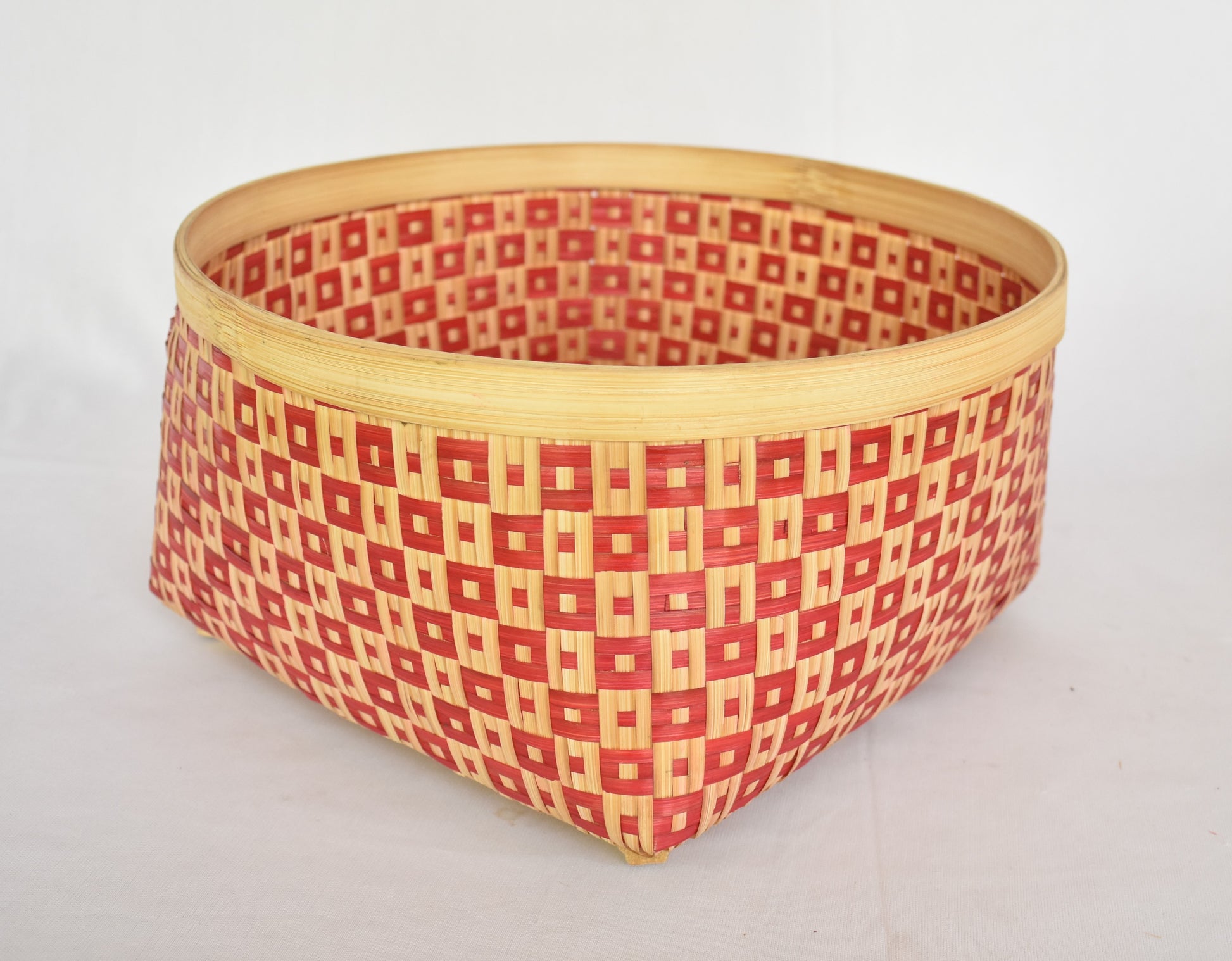Vibrant handcrafted bamboo basket set of 3 in large, medium, and small sizes, ideal for storage or décor.