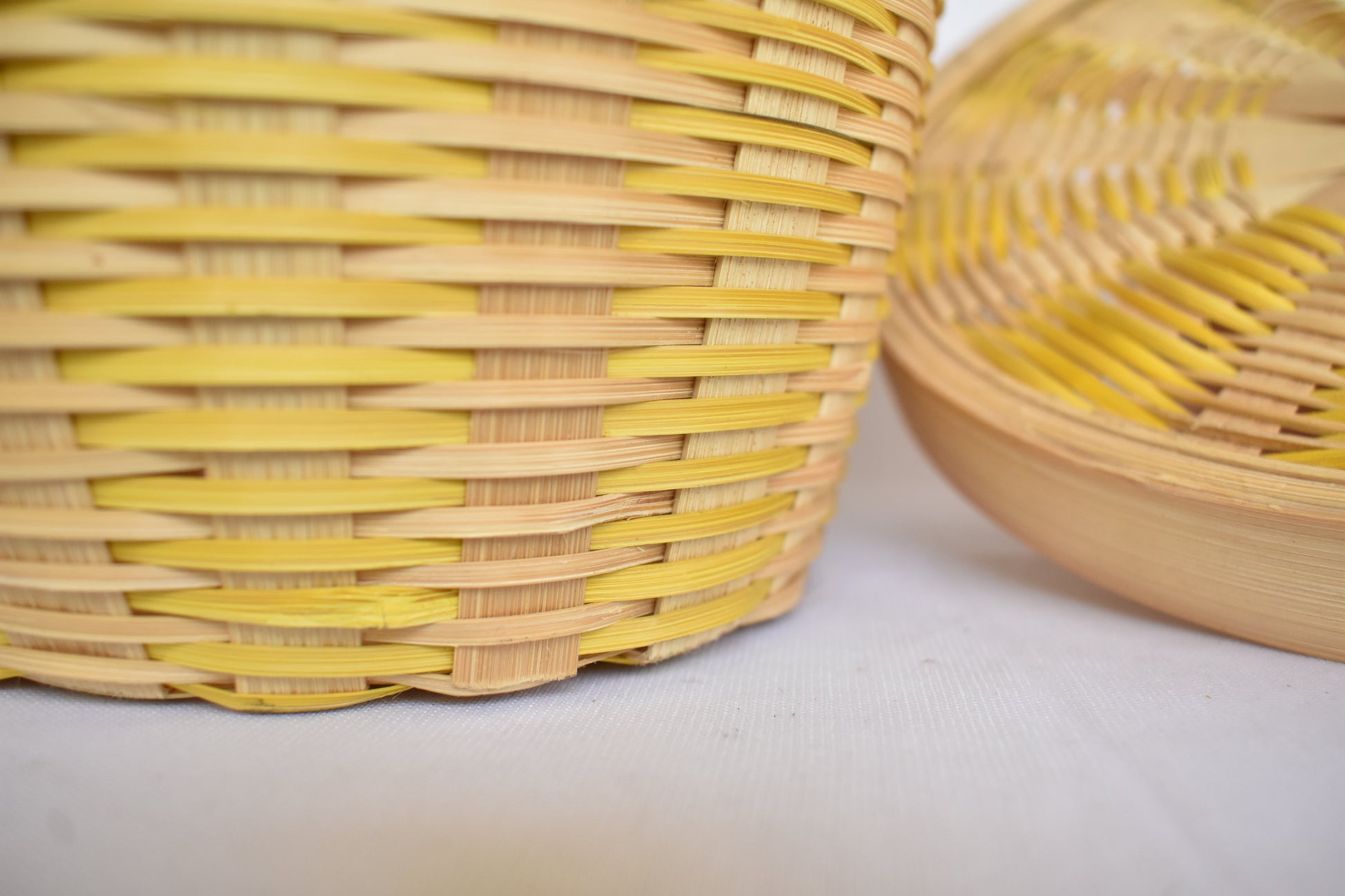 Handcrafted bamboo basket set of 3 in large, medium, and small sizes, ideal for storage or décor.