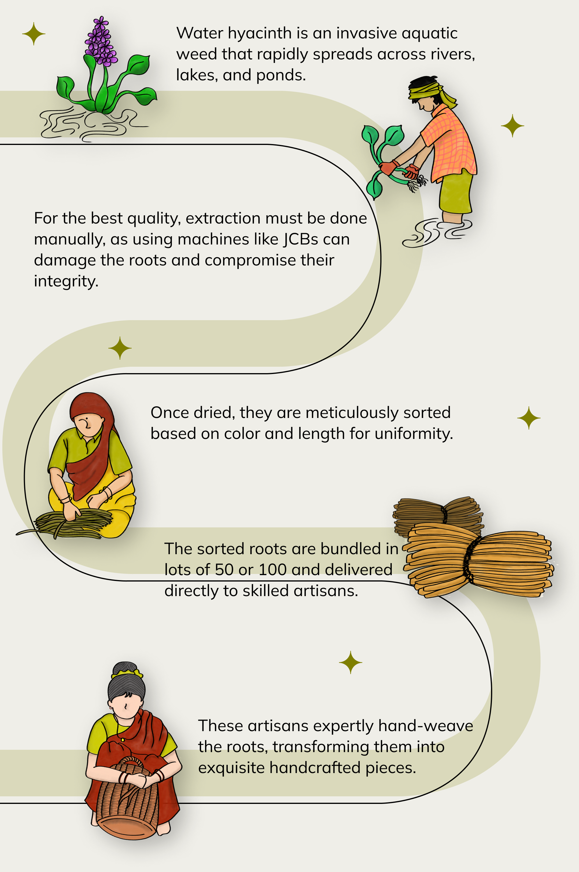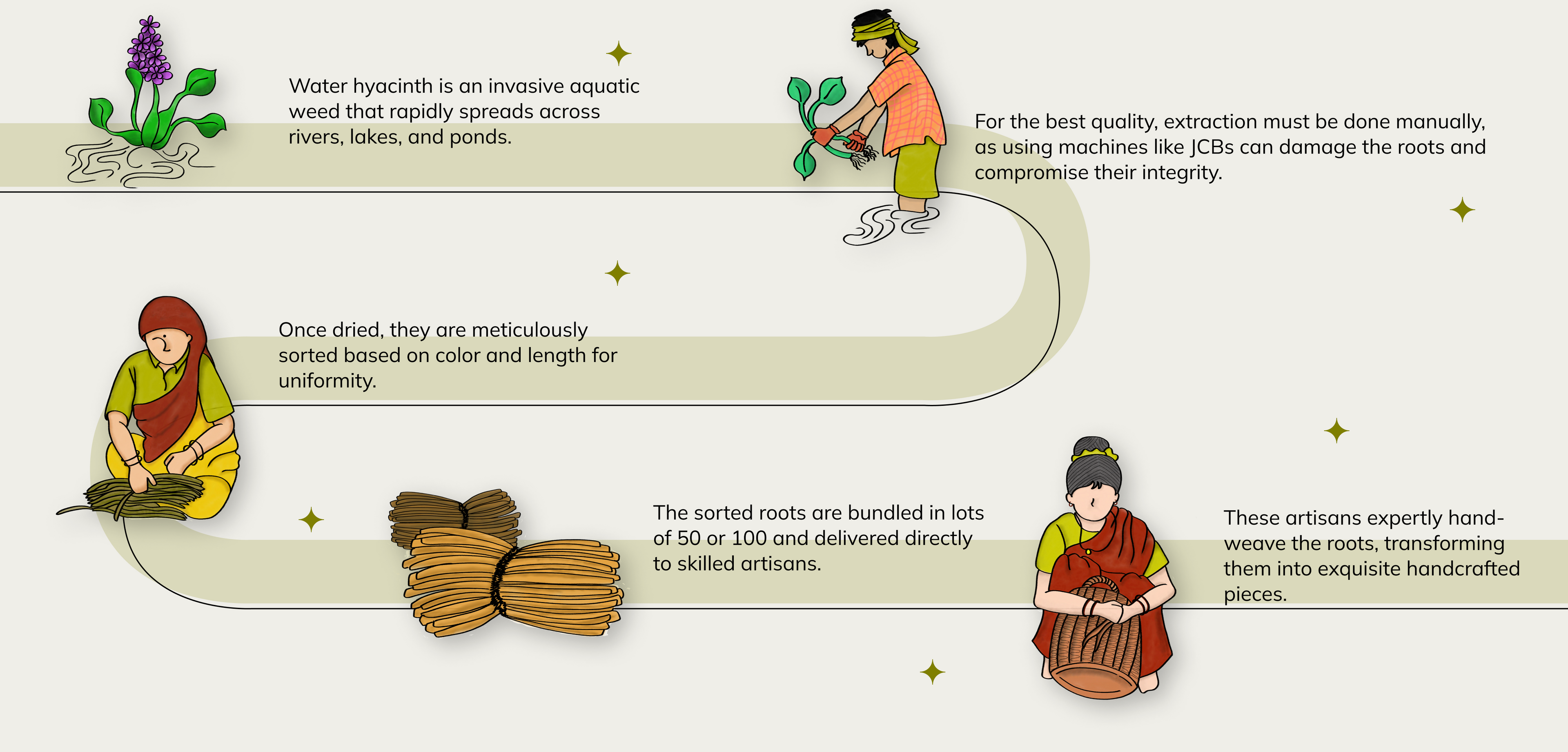 What was once seen as waste is now woven into wonders—its soft, organic textures spun into baskets, mats, and furniture, capturing the fluid grace of water and nature’s ability to renew. It’s beauty born from what was once forgotten.