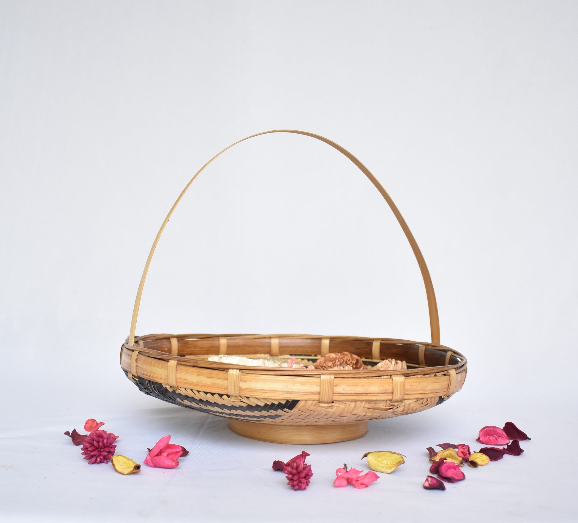 Bamboo Flower Basket | Round Shape | With Handle