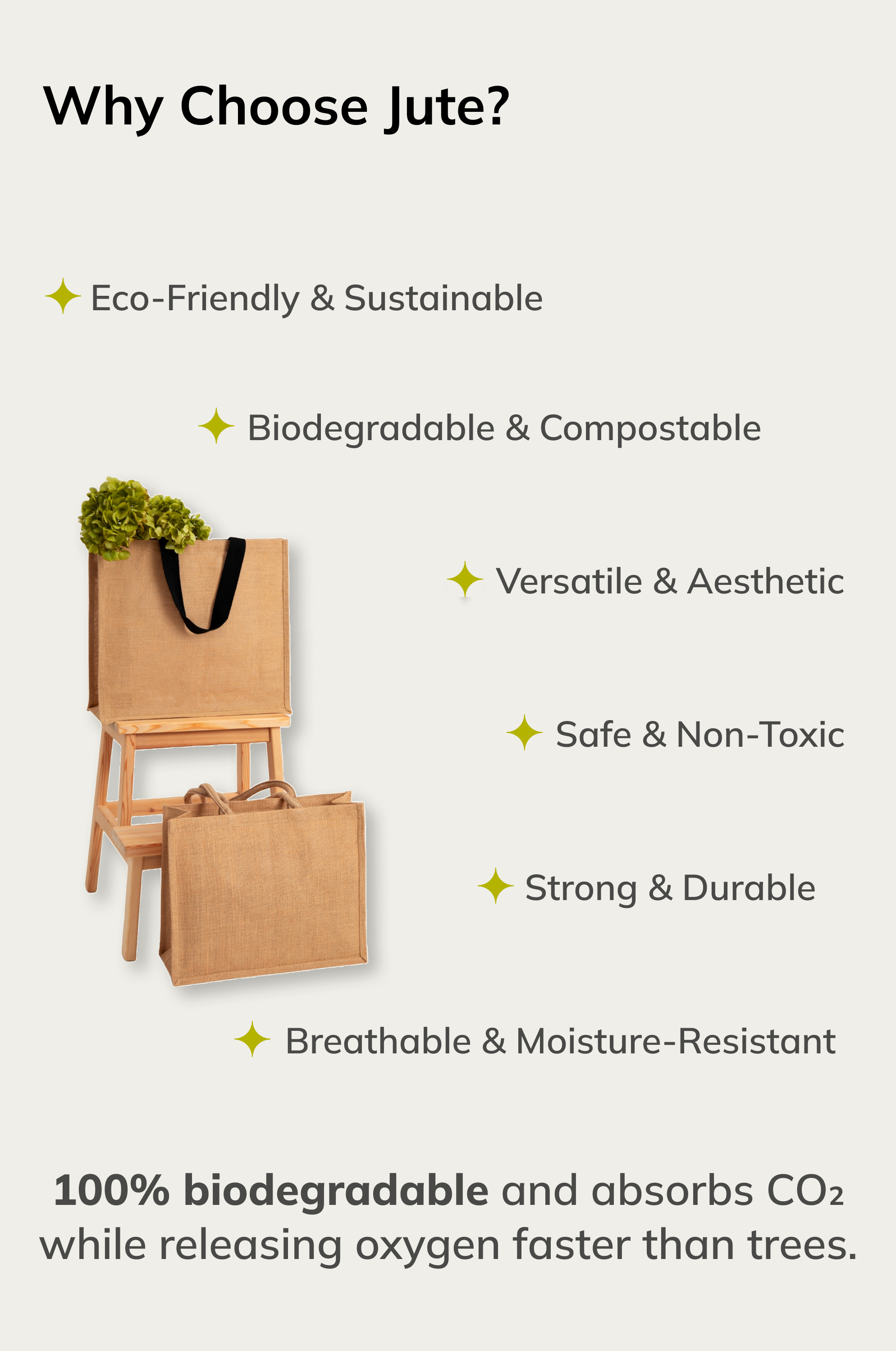 Carry your essentials in style with this eco-friendly plain jute tote bag. Durable, lightweight, and biodegradable, it’s perfect for everyday use—whether you're heading to the market, office, or beach