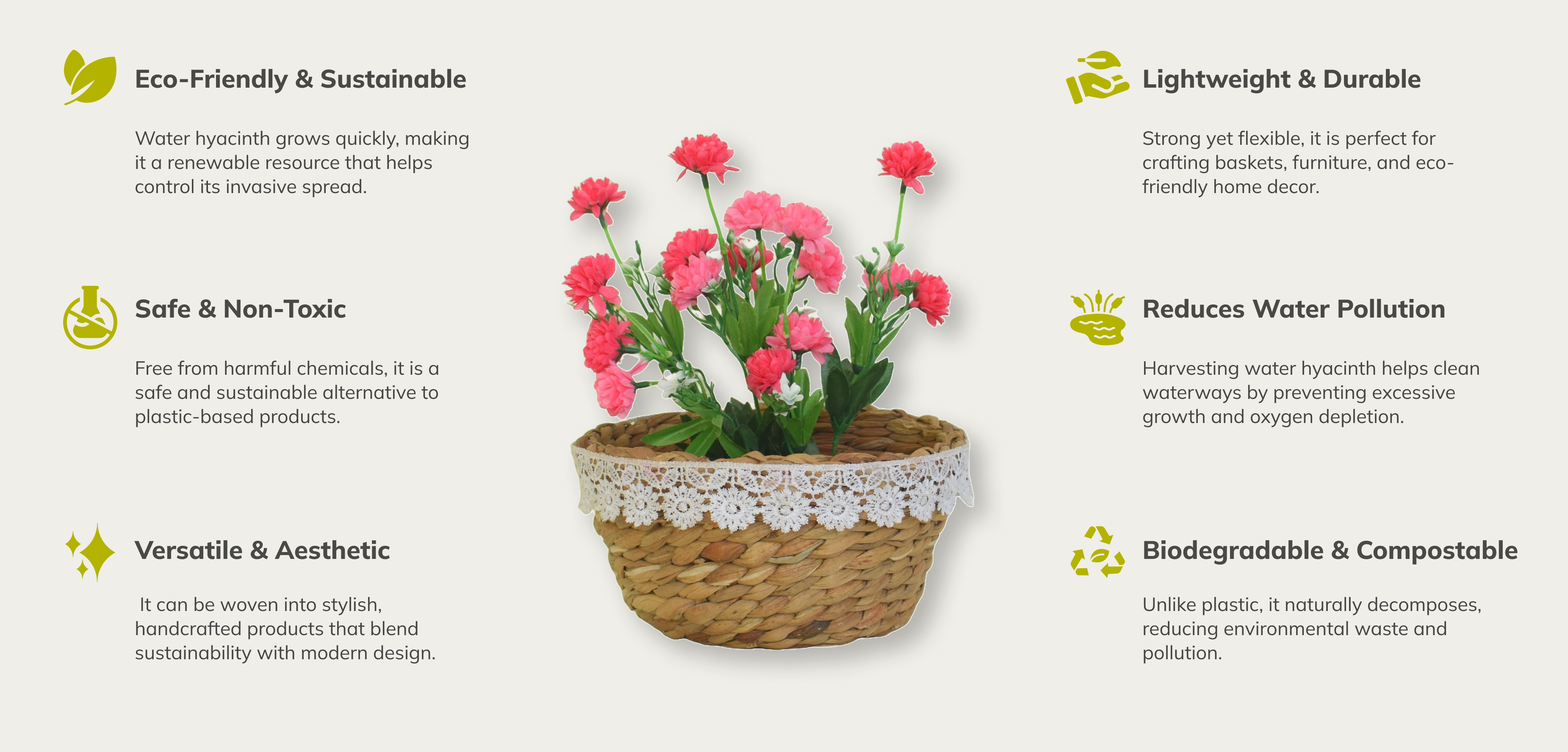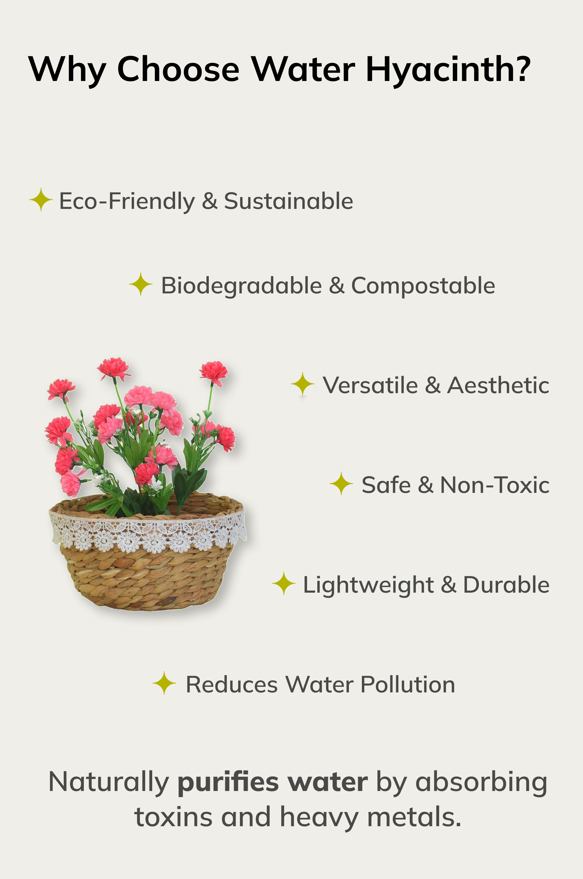 Storage Tip: Store water hyacinth products in a dry, cool space. Avoid placing heavy objects on top of them to preserve their natural shape.
